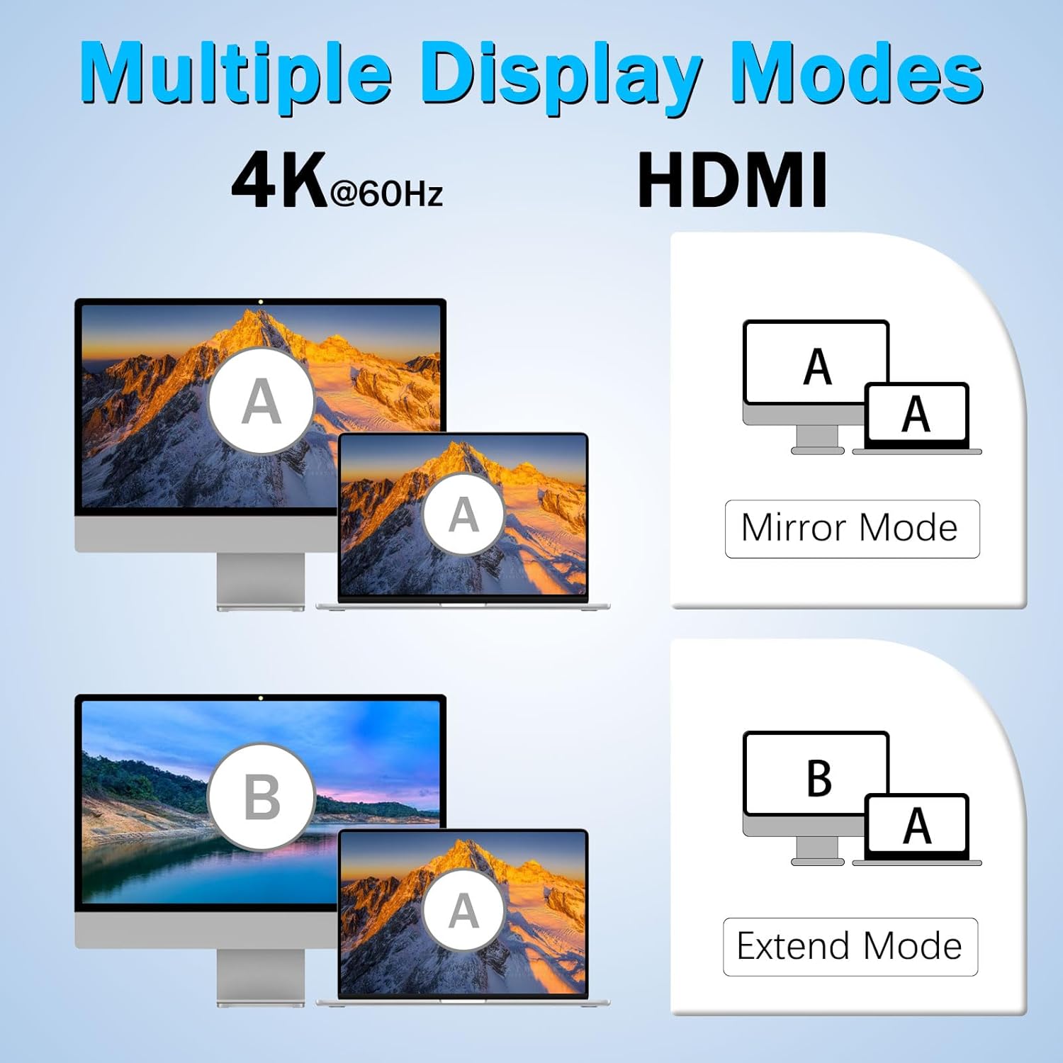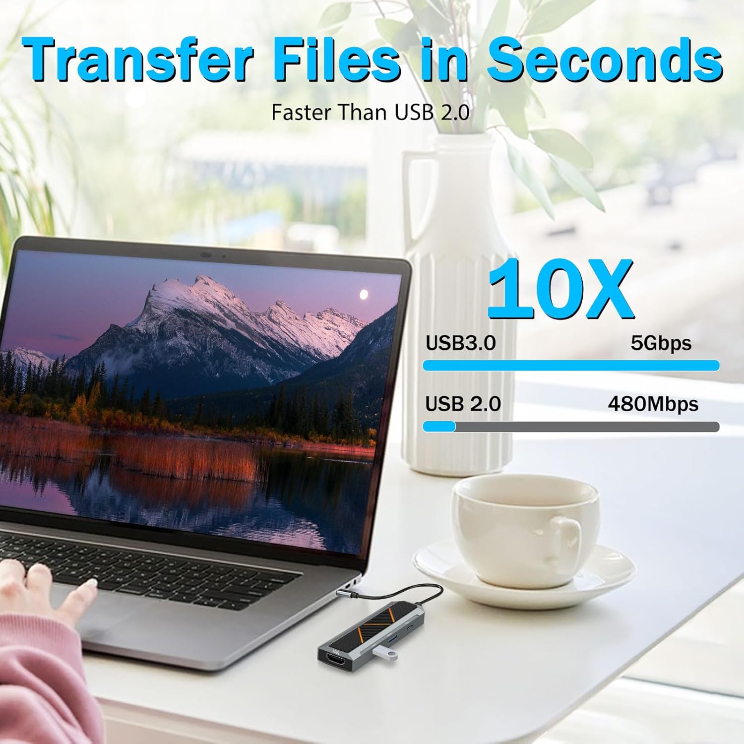 4K 60Hz HDMI задлагчтай 4-in-1 USB-C төвийн гол давуу талуудын нэг нь өндөр нягтралтай видео гаралтыг дамжуулах чадвар юм. HDMI порт нь 60 Гц давтамжтай 4K нягтралыг дэмжиж, тодорхой дүрслэл, жигд хөдөлгөөнийг хангадаг.