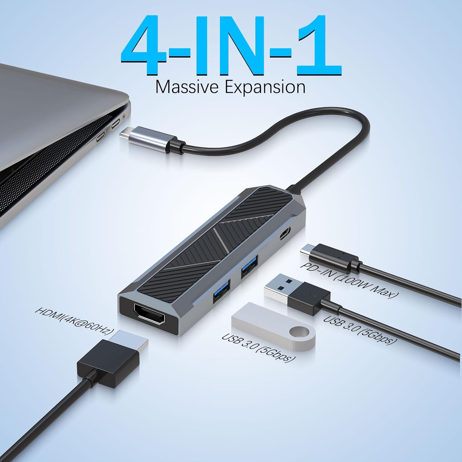 4K 60Hz HDMI задлагчтай 4-ин-1 USB-C төв – Орчин үеийн төхөөрөмжүүдэд зориулсан авсаархан холболт