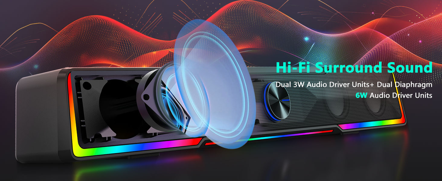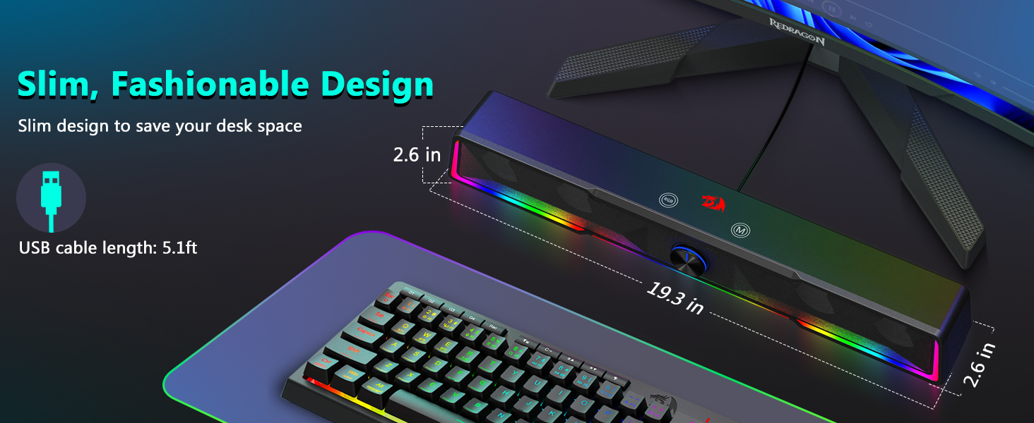Нэгдсэн soundbar бүтэц нь чанга яригчийг ширээний хэсэгт дууг жигд хуваарилах боломжийг олгож, уламжлалт авсаархан чанга яригчтай харьцуулахад илүү өргөн аудио талбарыг бий болгодог. Энэхүү загвар нь хөгжим, кино, тоглоом, онлайн уулзалтуудыг сонсох туршлагыг сайжруулдаг.