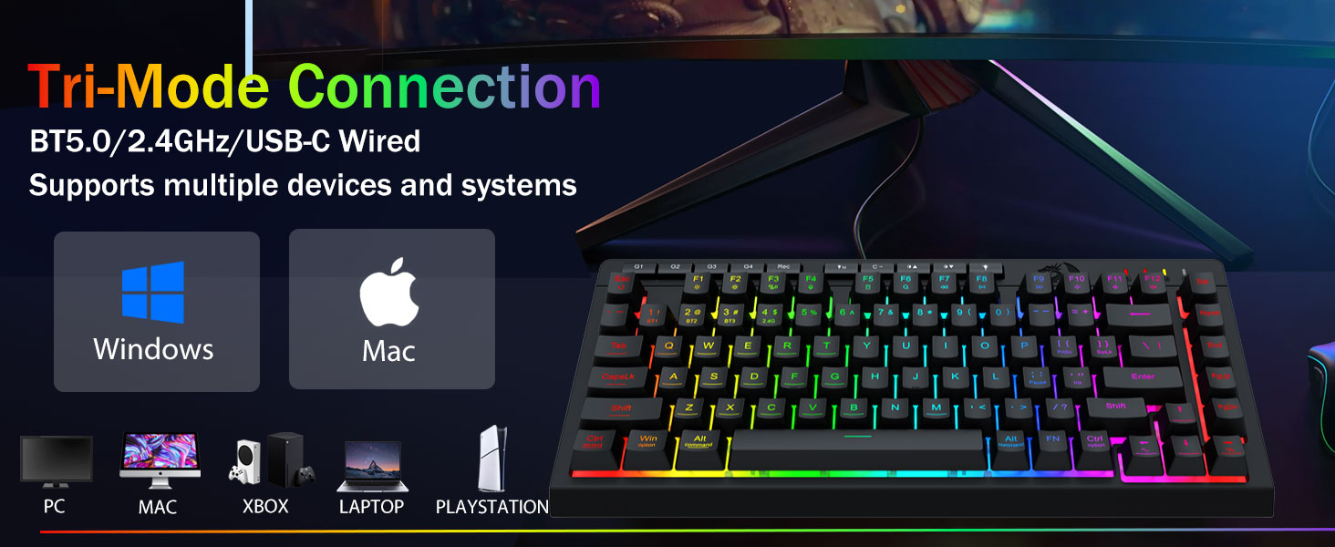 TRI-MOONETETERSETINESTINATINESINESING ба Олон төхөөрөмжийн ур чадвар- Bluetooth 5.0, COLDEELELLELLELLELLELLELLELELLER-ийг 2-оос дээш утастай, эсвэл USB-C хүртэлх төхөөрөмжтэй холбож, 5 хүртэлх төхөөрөмжтэй (PC, Mac, Mac, PS / Xbox) хооронд холбож өгдөг.