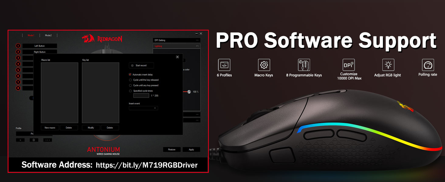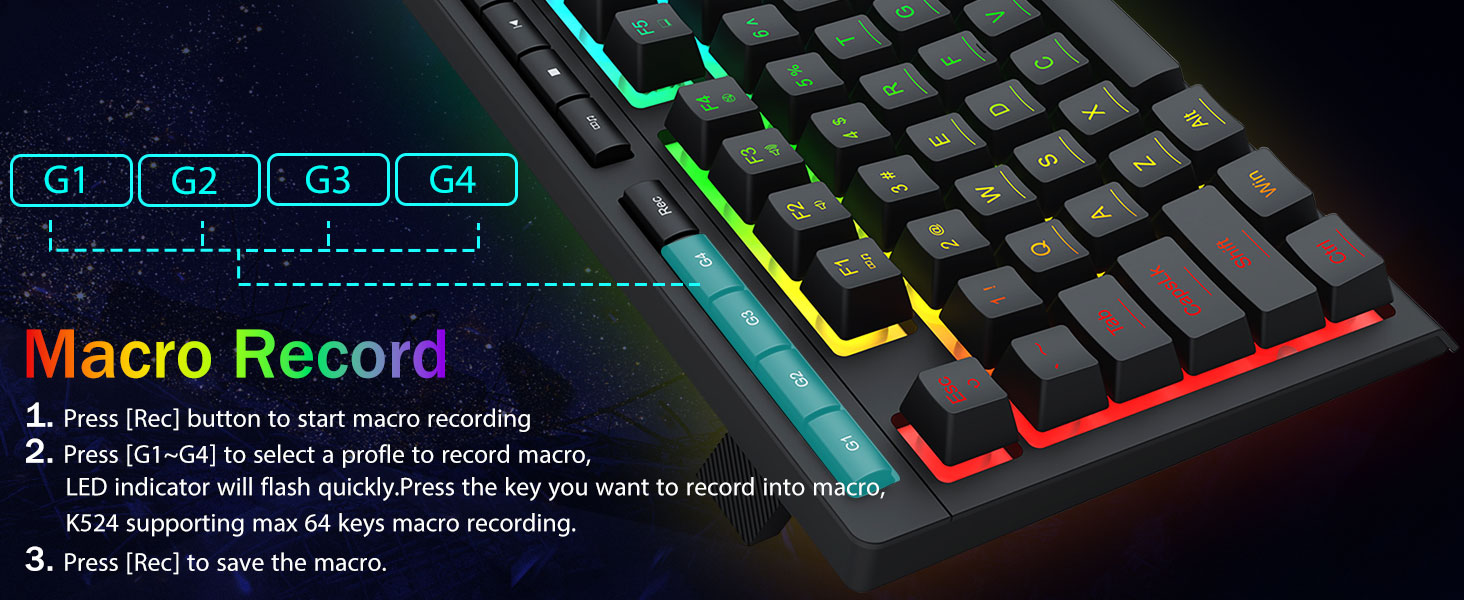 Програм хангамжийн дэмжлэг -Өөрийн шинэ горим, үр нөлөөг боловсруулах боломжтой програм хангамжийг ашиглан сонголтоо өргөжүүл. Илүү үр дүнтэй ажил, тоглоомын өөр өөр товчлуур эсвэл товчлол бүхий макро.Програм хангамжийн холбоос: Bit.ly/k524weeddriredrive