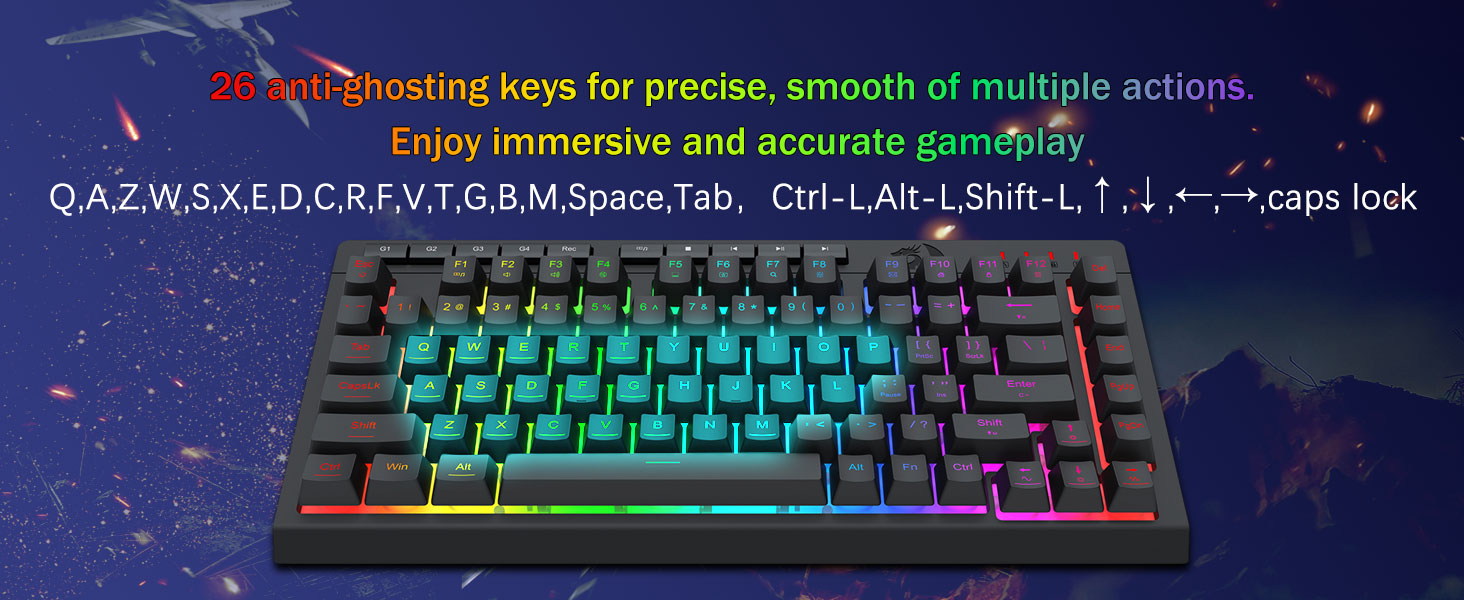 26 Сүнслэгийн эсрэг түлхүүрүүд & зориулалтын медиа хяналт:26 товчлуурын эсрэг товчлууруудыг (доогуур зураастай товчлуурын товчлуурууд) таны хүссэнээр хурдан, үнэн зөв, үнэн зөв тоглолтын дагуу ажиллана. Зориулалтын медиа хяналт нь таныг тоглохыг зөвшөөрч, Түр зогсоох, Түр зогсоох, мультимедиа алгасах бөгөөд таны тоглоомыг гарнаас нь алгасах тул Multimedia гөлгөр бөгөөд тасралтгүй алгасах болно.