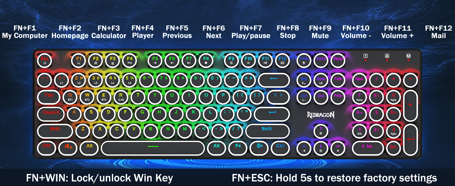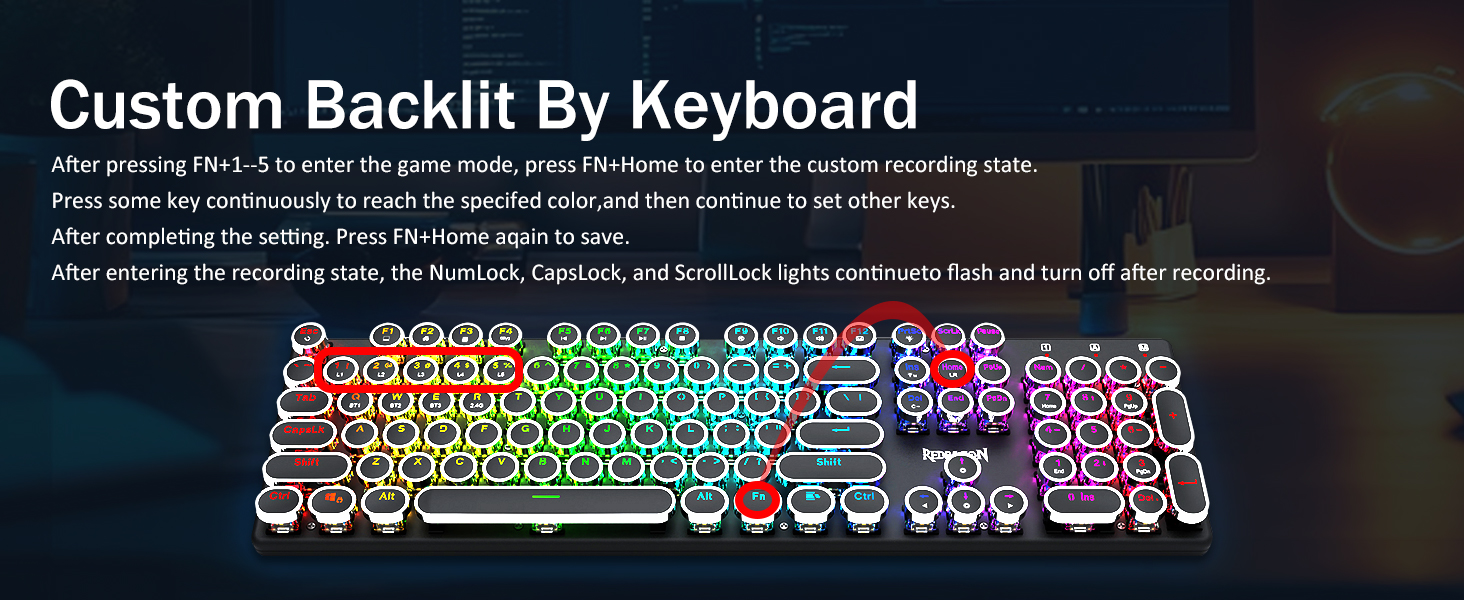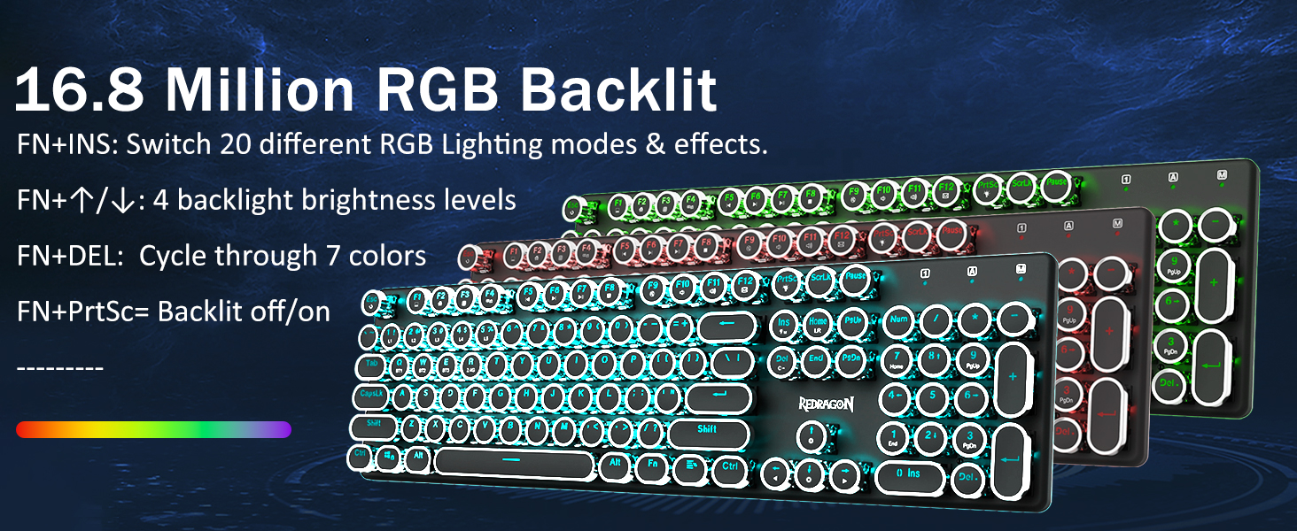 𝗩𝗶𝗯𝗿𝗮𝗻𝘁 𝗚𝗿𝗼𝗼𝘃𝘆 𝗥𝗚𝗕 -20 хүртэлх урьдчилан гэгээлэг горимыг буцаах горим нь гараа өөрөө эсвэл програм хангамжаар сонгох боломжтой. 4 тод байдлын түвшин, урсгалын хурдыг самбар дээр бас тохируулж өгдөг. Тоглоомын хувьд өөрийн хүссэн тохиргоог сонгоно уу. 7 Өөр өөр хатуу өнгөт өнгө орсон: улаан, ногоон, ногоон, цэнхэр, шар, ягаан, хөх, Цагаан, цагаан. Түлхүүр бүрийг хүссэн өөр өнгөөр тохируулж болно.