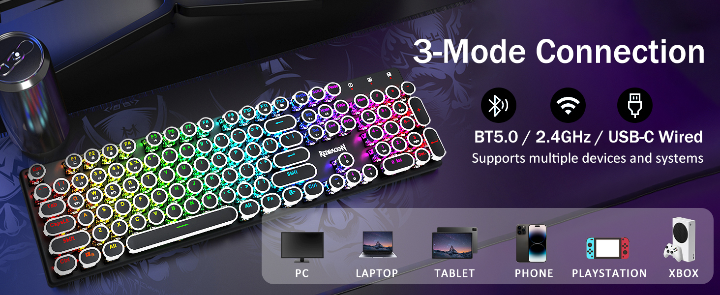 𝟯-𝗠𝗼𝗱𝗲 𝗖𝗼𝗻𝗻𝗲𝗰𝘁𝗶𝗼𝗻 -Redron Mortem Blue шилжүүлэгч нь дунд зэргийн эсэргүүцэл, сонсогдож, сонсголыг санал болгодог. Vintage Steampunk гарын дугуйны товчлуур нь сонгодог бичгийн машин шиг харагдаж байна.