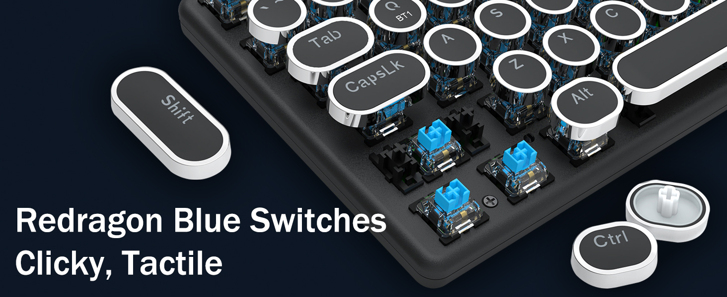 𝗥𝗲𝘁𝗿𝗼 𝗥𝗲𝘁𝗿𝗼 𝗥𝗲𝘁𝗿𝗼 𝗧𝘆𝗽𝗲𝘄𝗿𝗶𝘁𝗲𝗿 𝗦𝘁𝘆𝗹𝗲 𝘄𝗶𝘁𝗵 𝗠𝗲𝗰𝗵𝗮𝗻𝗶𝗰𝗮𝗹 𝗞𝗲𝘆𝘀 -Redron Mortem Blue шилжүүлэгч нь дунд зэргийн эсэргүүцэл, сонсогдож, сонсголыг санал болгодог. Vintage Steampunk гарын дугуйны товчлуур нь сонгодог бичгийн машин шиг харагдаж байна.