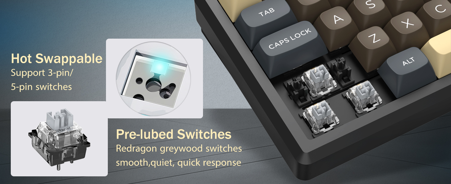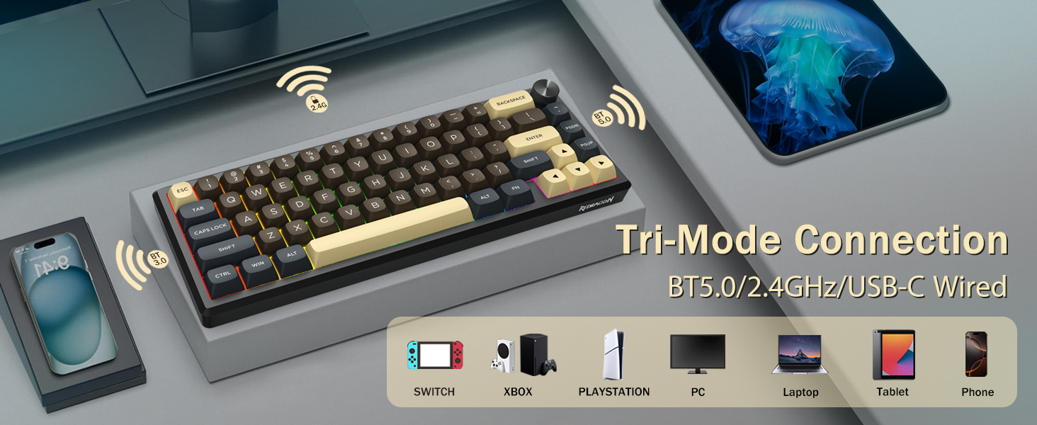 Х: Тийм ээ, хар K727 60% Утасгүй механик тоглоомын гар нь утасгүй болон утастай холболтыг дэмждэг. Хэрэглэгч өөрийн хэрэгцээ шаардлагаас хамааран горимуудын хооронд шилжих боломжтой.