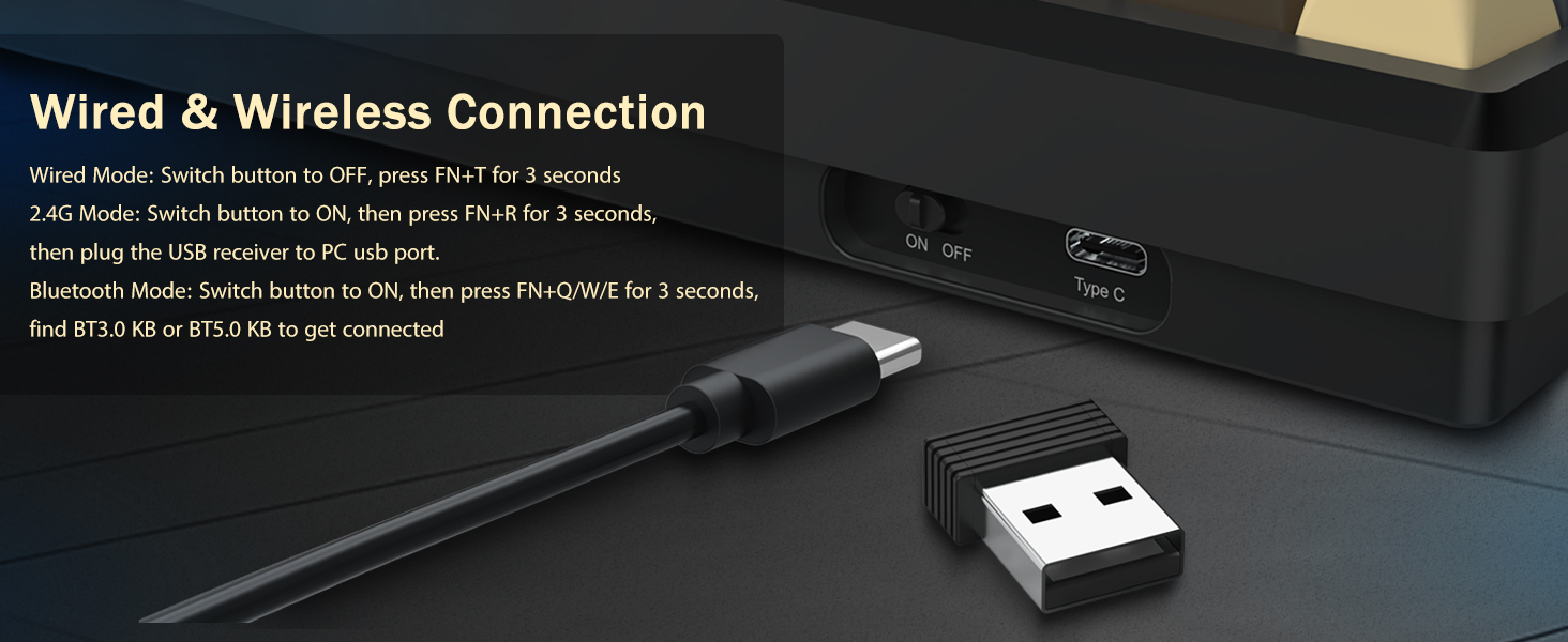 Тохиромжтой болгох үүднээс гар утасгүй холболтыг, тогтвортой ажиллагааг хангахын тулд утастай USB холболтыг дэмждэг. Хэрэглэгч өөрийн тохиргооноос хамааран горимуудын хооронд шилжих боломжтой.
