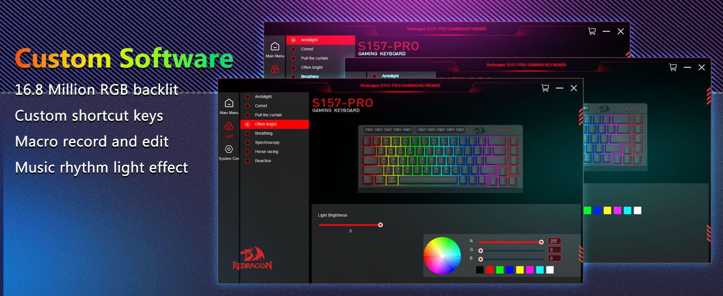 Overersive rgb гэрэлтүүлэг ба хулгана- 8 Predet горим бүхий 16.8 сая RGB өнгө (солонго долгион, реактив) + 6 Diy профайл. Шөнийн цагаар тоглоход тохиромжтой, шөнийн хамт Тоглоомын ажилтнуудад тохиромжтой.