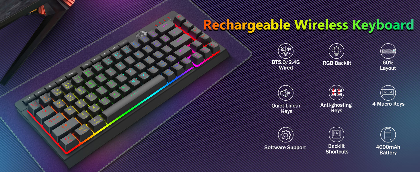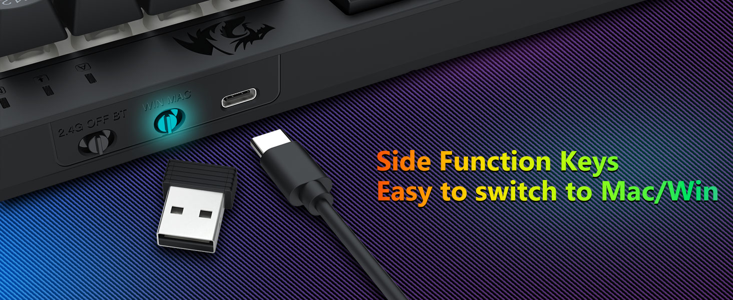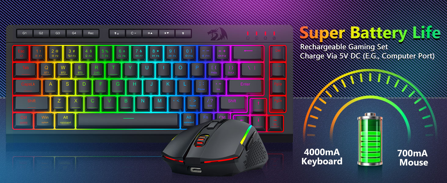 Tri-Mode-ийн олон тооны гар ба хулгана- Блютүүт 5.0, 2.0GHZ утасгүй, эсвэл USB-c утасгүй, эсвэл USB, Mac, Mac, PS, PS / Xbox, PS / Xbox) -ийг хооронд нь холбож өгдөг. Hybrid / Game-ийн тохиргоонд тохирох төхөөрөмжөөр тохирох төхөөрөмжийг ашиглан төхөөрөмжөөр тохирохгүй. 4,000MAH батерейны тусламжтайгаар 4,000MAH зайтай байгаарай, 700MAH зайны зай (30+ хоногийн зайтай, 50 цаг.