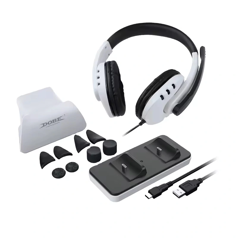 Захиалгат бөөний DOBE PS5 тоглоомын хянагч 12 нь 1 багц, суудлын цэнэглэгч+утастай чихэвч+тастангийн+гох товчлуур+жойстикийн тагны багц