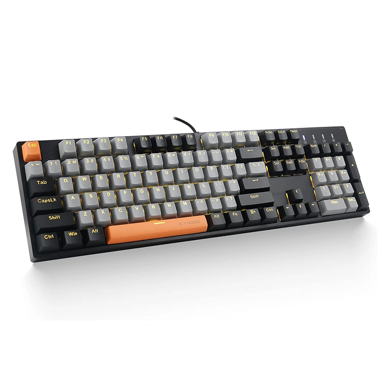 E-YOOSO Z-14 104 товчлууртай, улаан унтраалгатай, бүрэн хэмжээтэй, шар өнгийн гэрэлтдэг, механик тоглоомын гар. Сайн бүтэцтэй, боломжийн үнэ, тоглоом тоглож, хамтран ажиллах боломжтой