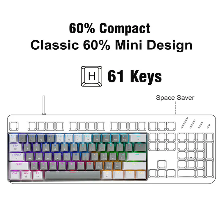 【Хувийн гарны зөөврийн загвар】Энэхүү зөөврийн 60% механик утастай тоглоом нь төгс хэмжээтэй, Энэ нь бүх орчинд сайн, бизнес аялалын тоглоом оффисын гэрийн хэрэглээ, ямар ч шаардлагагүй Тоглогчид болон бичгийн машинд илүү тохиромжтой Numpad нь таны ширээний компьютерт илүү их зай өгнө.