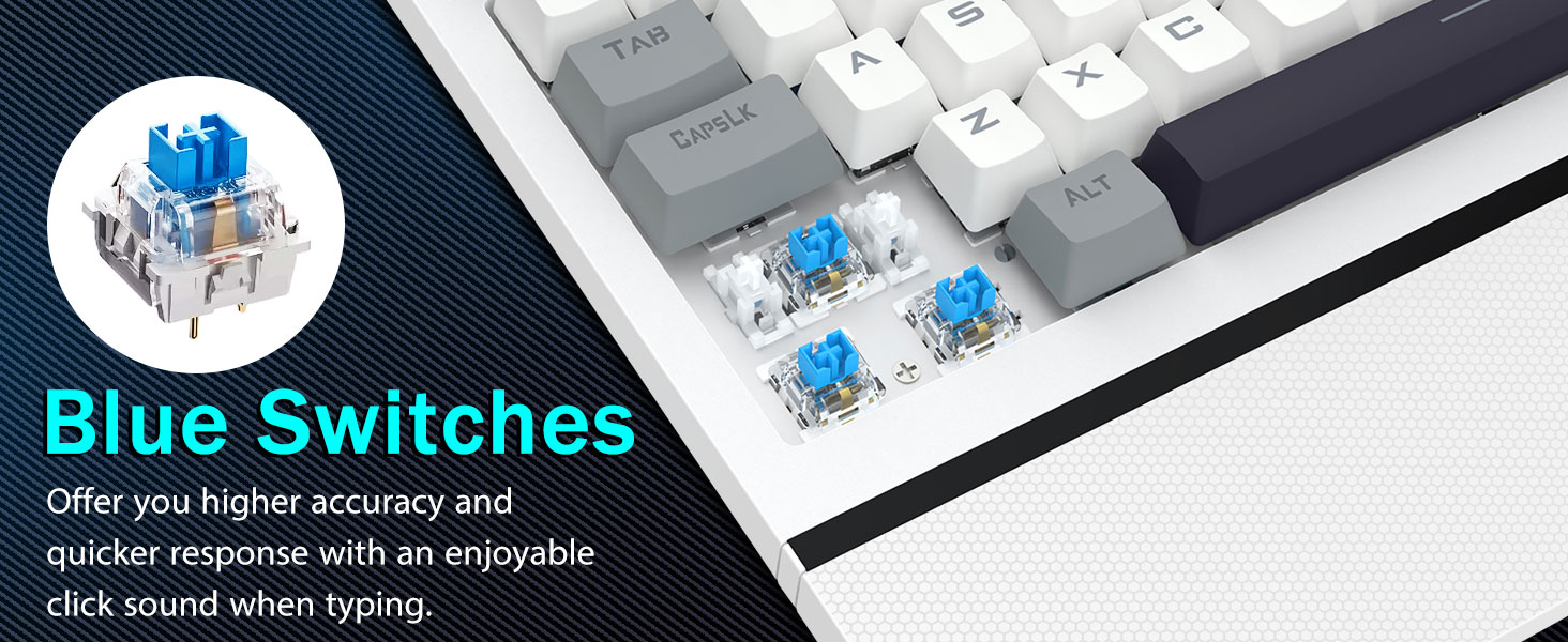 【Хариуцлагатай цэнхэр унтраалга нь нарийвчлан бичнэ】Манай PC гар нь аянга цахилгаан хангадаг цэнхэр унтраалгаууд дээр товчилсон цэнхэр унтраалгауудтай. Товчлуур бүр нь сэтгэл ханамжийг бий болгох, бичих туршлагыг сайжруулахын тулд сэтгэл ханамжийг үүсгэдэг. Илүү гүн гүнзгий аялал, илүү хүчтэй санал хүсэлт, илүү сайн санал, тохь тухтай, бичиж байгаа нь илүү нарийвчлалтай биш харин илүү тохь тухтай байдаг. Хэрэв та тэр мэдрэмжийг харвал "Clicky" мэдрэмж "мэдрэмж, бидний гар нь таны хувьд төгс сонголт юм.