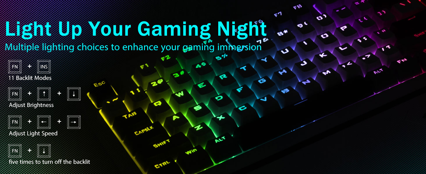 【RANDLIT READLIT PAVER-ийн гарт гар11 динамик арын гэрлийн горим, 5 динамик арын гэрэл, хурдтай хурд, тод хурд, тод түвшин. Энэ гар нь таны тоглоомын тохиргооны тохируулга, сэтгэлийн хөдлөл, дүр төрхийг сайжруулах, ялангуяа, дүр төрхийг сайжруулах, ялангуяа бага гэрлийн орчинд. Хэт удаан эдэлгээтэй давхар тарилгын atbiscation keycaps kycaps нь CRYCOPS-ийг БАРИЛГА, ХУГАЦААНЫ НЭГДСЭН, ТУСГАЙ, БАРИЛГА, ДЭЛГЭРЭНГҮЙ БАЙГУУЛЛАГУУДЫН НЭГДСЭН, НЭГДСЭН, ДЭЛГЭРЭНГҮЙ БАЙГУУЛЛАГУУД, НОГООНЫ НОГООНЫГ ХҮРГЭЕ.