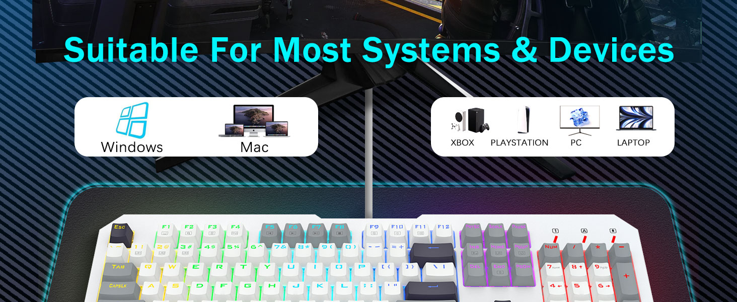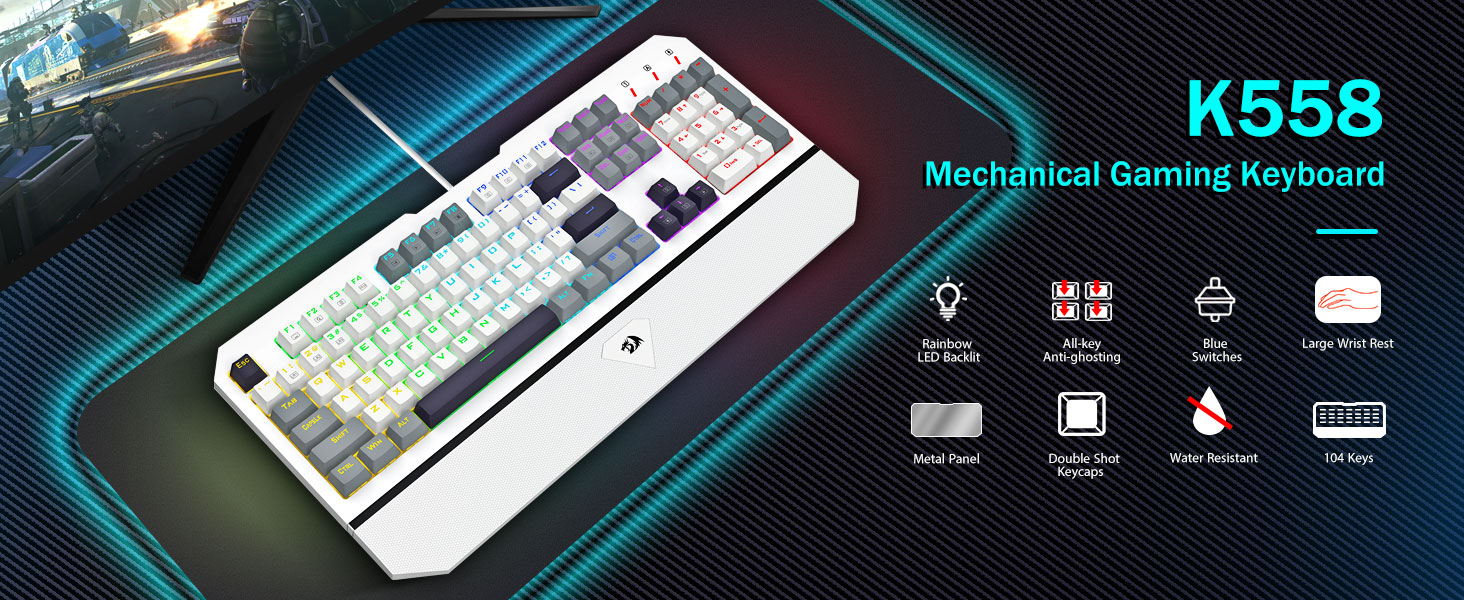 【Өндөр түвшинд 104-гийн бүрэн хэмжээтэй бүтэн гар】】Топ - Ангийн металл хайлш ба abs материал, гарын самбар нь гарын самбар нь маш бат бөх, зураасанд тэсвэртэй байдаг. Алт - Бүртгэгдсэн USB холбогч нь эцсийн тоглоомын гүйцэтгэлийн тогтвортой, найдвартай холболтыг баталгаажуулдаг. 1.39KG жинтэй, энэ гар нь ашиглах үед тангараг өргөх чадвартай хатуу сав шиг санагддаг.